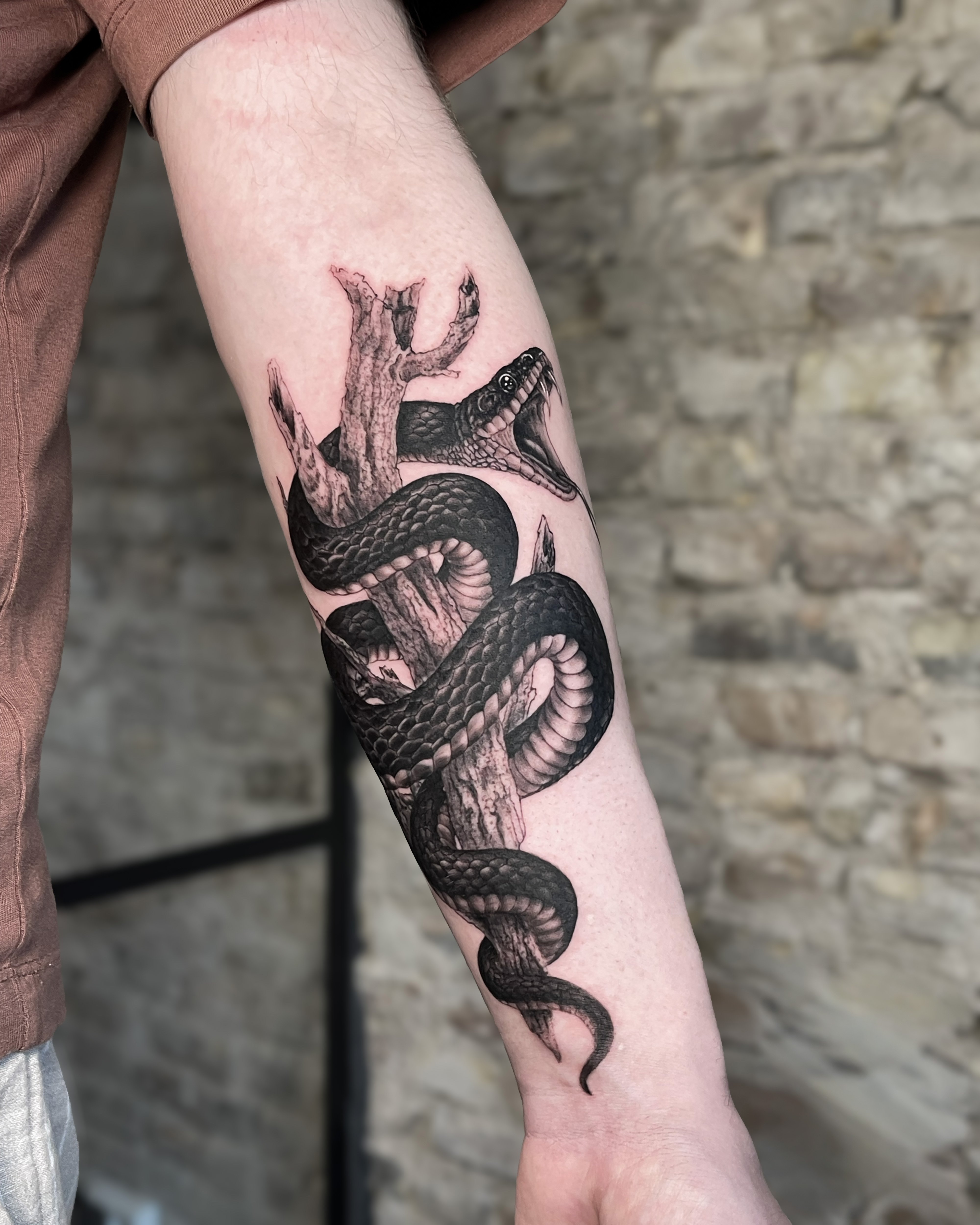 Hos Tattoo Studio 96 bruger vi nuancer og kontrast til at skabe dybde, så motivet holder sig skarpt over tid.